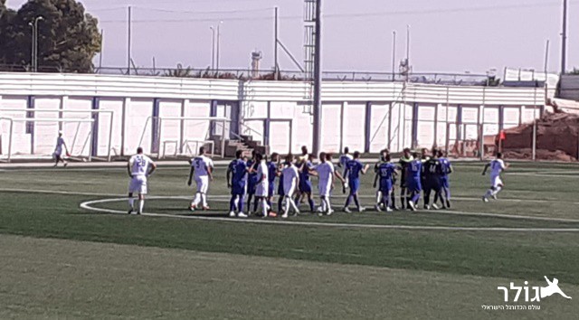 שחקני שתי הקבוצות לפני פתיחת המשחק (אוהד רון)