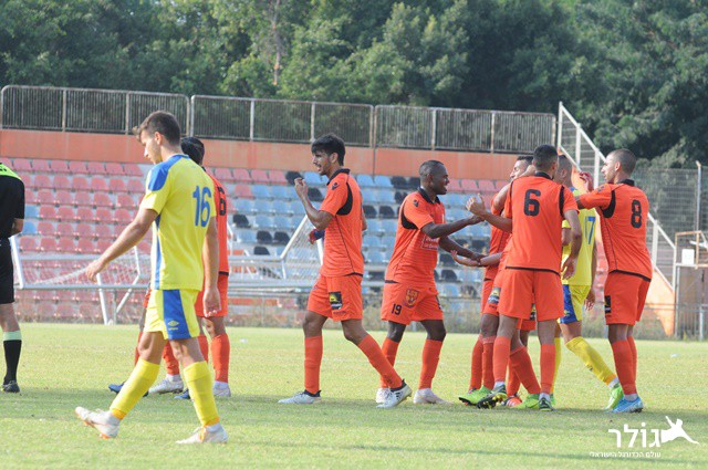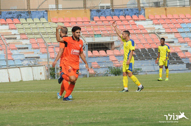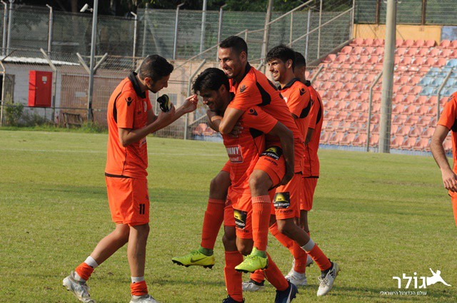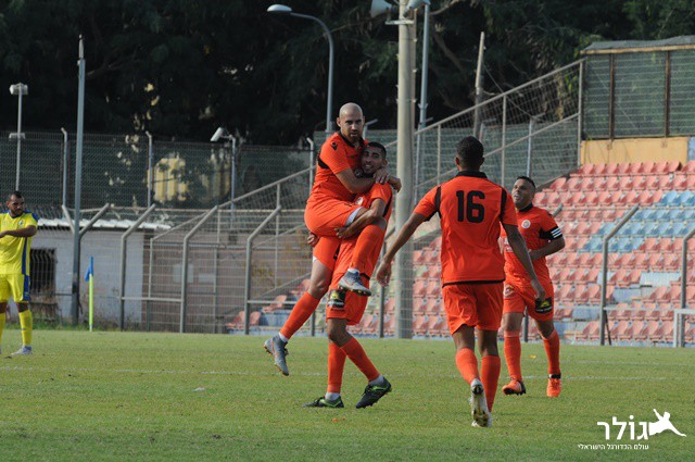 אוהד קדוסי כובש מהנקודה הלבנה וחוגג עם איתן אהרון ושאר חברי כפר שלם (איתן ידגר)