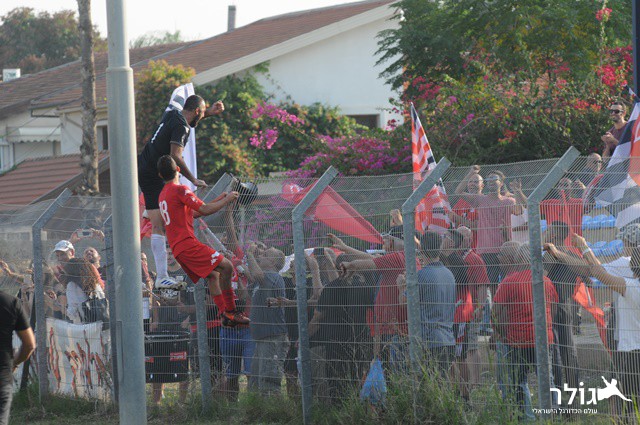 אוהד אדלשטיין כובש ורץ לחגוג עם אייל גולן (איתן ידגר)