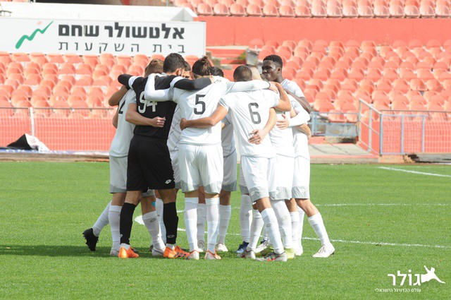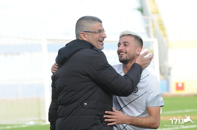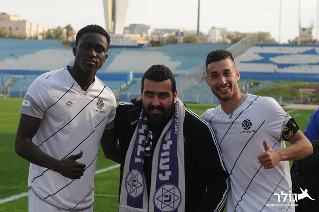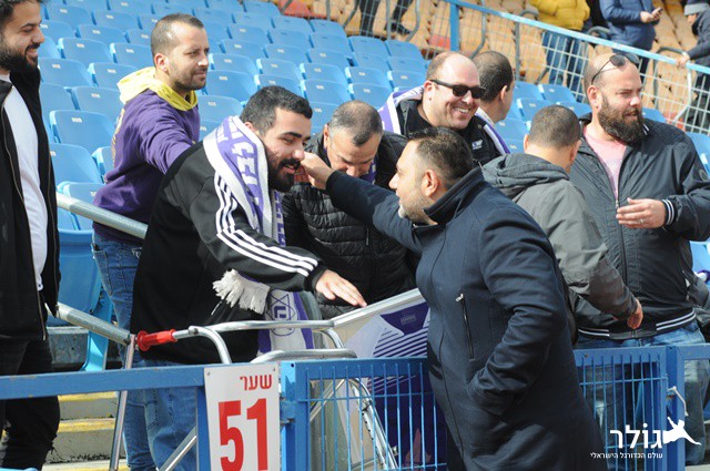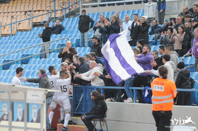 שחקני הכח חוגגים ניצחון יחד עם הקהל הסגול (איתן ידגר)