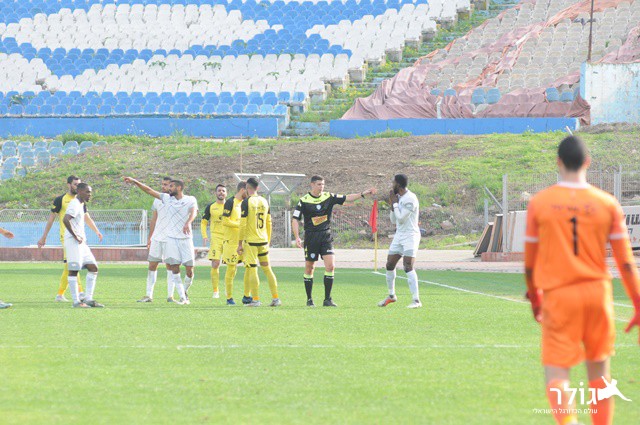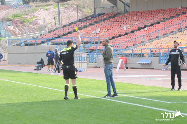 דוד מרטן רואה את הכרטיס הצהוב, אך זה לא הפריע לו לחייך בסיום (איתן ידגר)