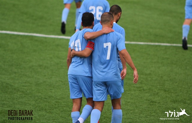 שחקני שמשון מחובקים אחרי השער הראשון במשחק (דדי ברק)