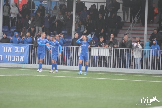 שחקני אור יהודה חוגגים את השער הראשון במשחק (איתן ידגר)
