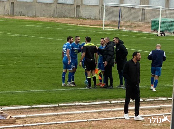 שחקני אשדוד מנסים לשנות את ההחלטה עם קוון המשחק (אבייתר ברק)