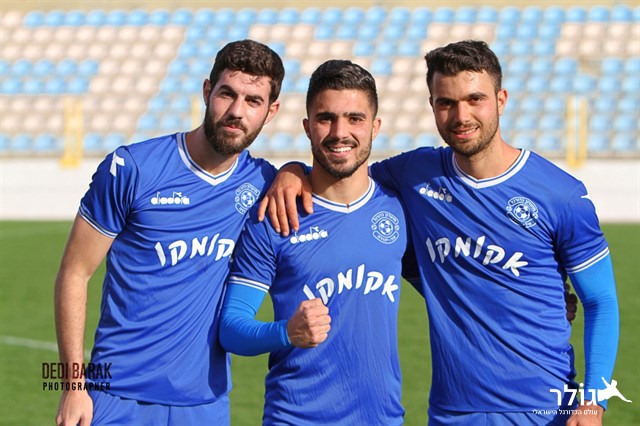 מתן ארביב וכובשי השערים במשחק מול מכבי הרצליה (דדי ברק)