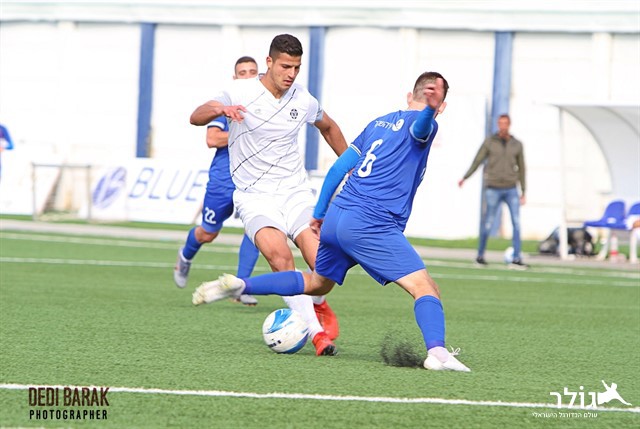 עמית מלכה במהלך מצוין, מעביר את חיים פונטורמלי (צילום: דדי ברק)
