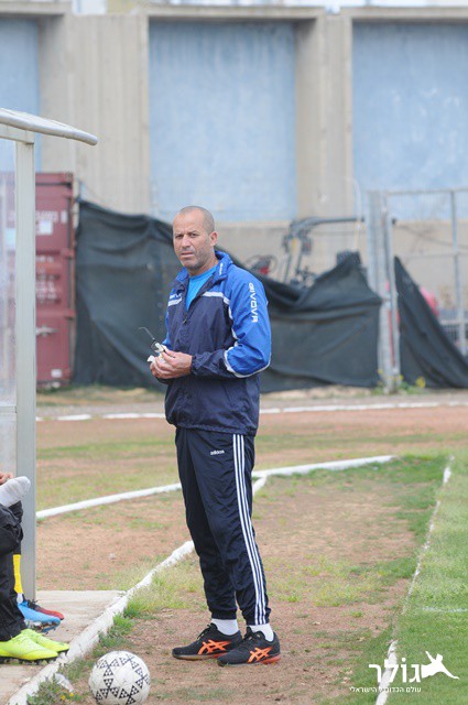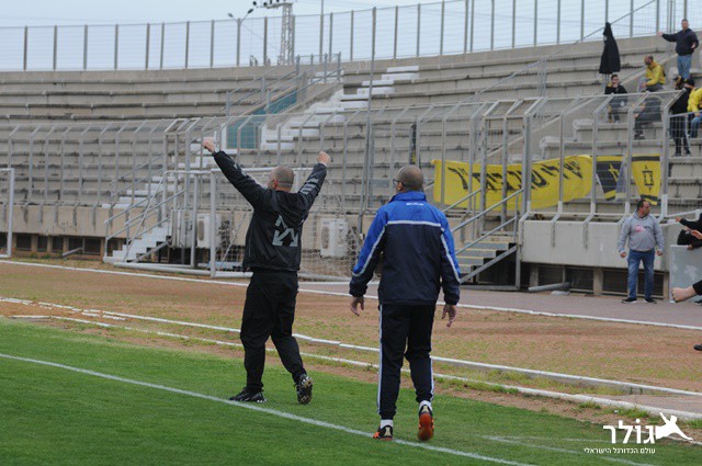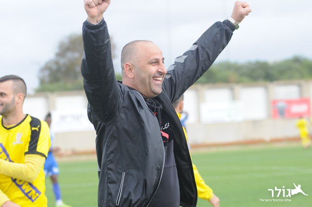 מוסא בן חיים עם חיוך ענק בסיום. מוסא ללא ספק יכול לשמוח עם הקבוצה שבנה העונה. (איתן ידגר)