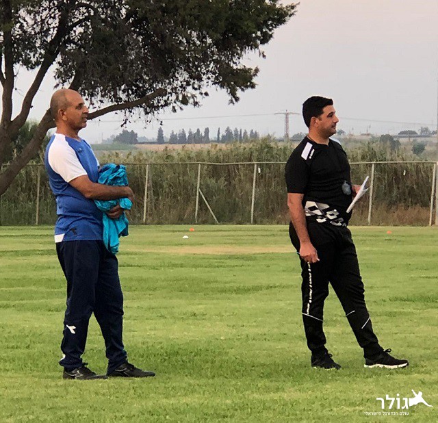 אמיר כהן מאמן הקבוצה ועוזרו במהלך האימון ובחינת השחקנים החדשים של כסייפה