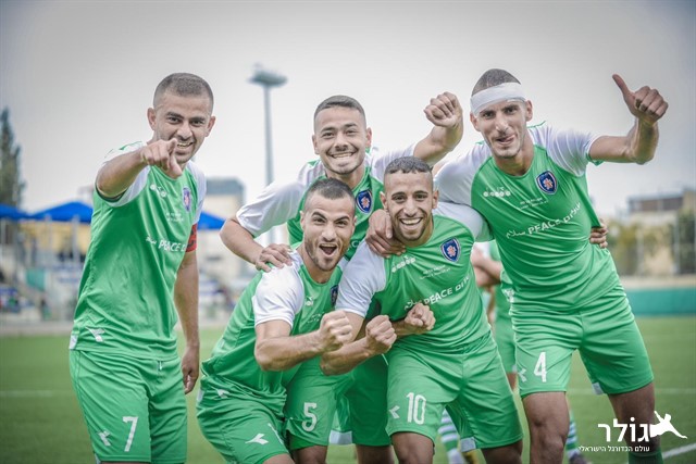 שחקני שמשון כפר קאסם - יש להם סיבות טובות לחגוג (צילום: חמודי זמירו)