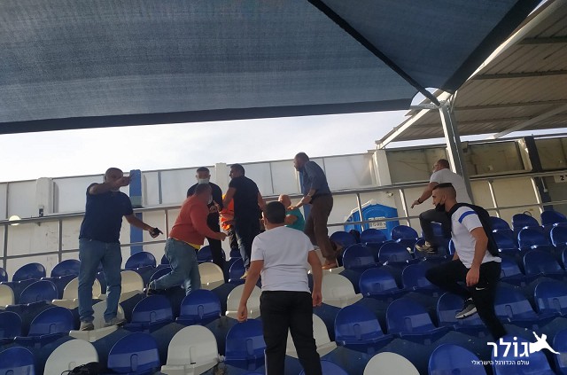לאחר ההתנהלות על הדשא, הוויכוחים עברו ליציע שם החלה מהומה שהתפשטה לאחר שמקורבים משתי הקבוצות ששהו באיצטדיון החלו להתווכח ואף לתקוטט, עד שהמאבטחים נאלצו להתערב ולהפריד ביניהם.