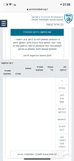 מ.ס דימונה יצאה היום (שני) לקרב תחתית מול בני לוד, שבסופו גברה עליה 0-1 משער של יוסף טוואבה. אך על פי בדיק השחקן ספג שני כרטיסים אדומים ישירים לאחרונה, וריצה רק הרחקה אחת בלבד כשהתקנון אומר כי שני כרטיסים אדומים משמעותם שתי הרחקות. אחרי בדיקה מעמיקה עולה כי בהרחקה מול אור יהודה, השופט שלף כרטיס אדום אחרי שריקת הסיום דבר שלא אמור לקרות, ולכן מופיע לשחקן שני כרטיסים אדומים למרות שהוא בכלל עמד לבית דין משמעתי. מנפלאות השיפוט בנמוכות? תגובת מ.ס דימונה: ״הנושא נבדק מול אגף הליגות הנמוכות בהתאחדות לכדורגל פעמיים, ההתאחדות אישרה שהשחקן יכול לשחק במשחק היום.״