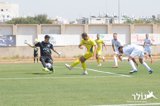 שחקני חולון לא מצליחים להכניע את שוער יפו (צילום: איתן ידגר)