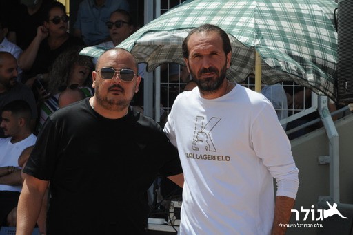 צחי אילוז ורונן קנפו בפתיחת המשחק (צילום: איתן ידגר)