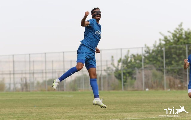 אופיר מזרחי חוגג את השער השלישי במשחק (צילום: עודד חסין)