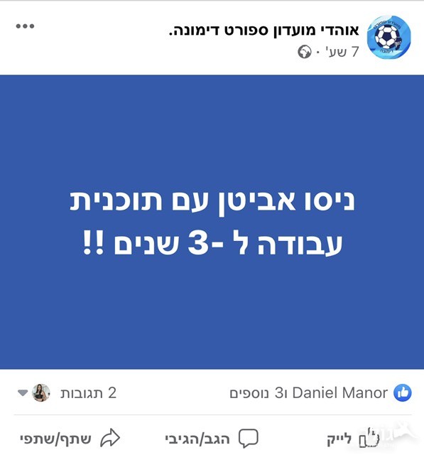 צילום מסך מתוך עמוד האוהדים של מ.ס דימונה