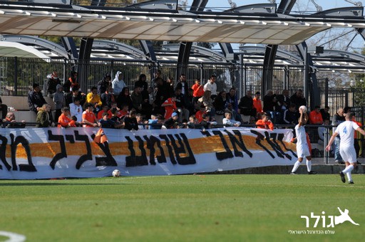 אוהדי כפר שלם פרסו שלט עידוד ענק (צילום: איתן ידגר)