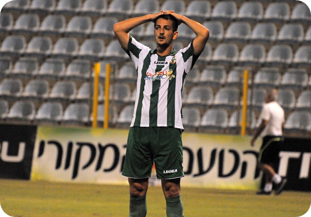 אבי מלכה לאחר החמצת הפנדל. (צילום: רמי גרידיש)