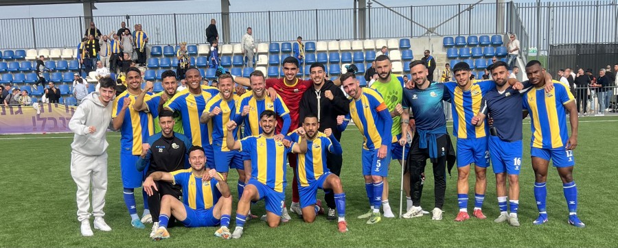 צילום:דובורת טירה. מבקיעי השערים וליאל כהן בתפקיד המבשל היום בנצחון של טירה בחוץ על אשדוד