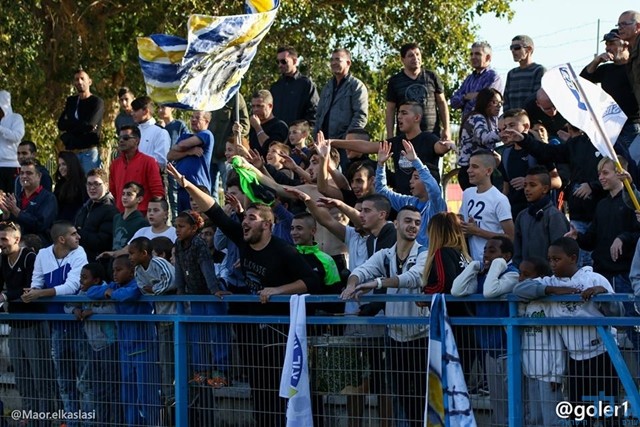 אוהדי צור שלום חוגגים ביציע (מאור אלקסלסי)