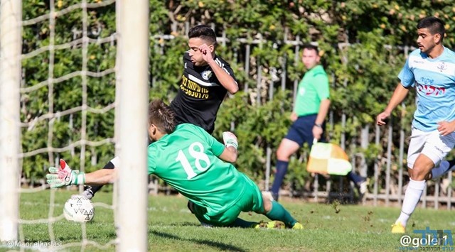 שרון לוי בועט קרוב למסגרת וכמעט מעלה את צור שלום ליתרון .