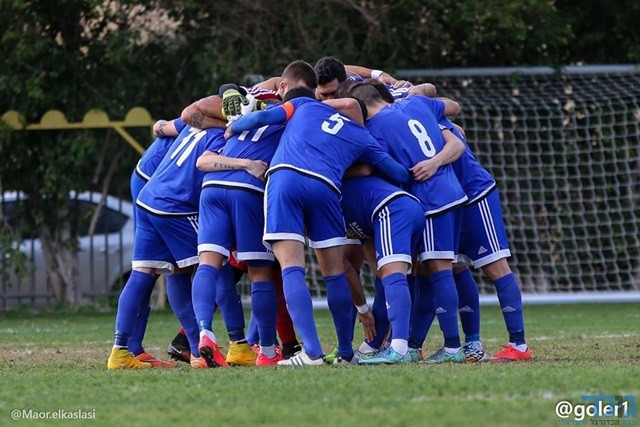 שחקני צור שלום בגיבוש קבוצתי לפני פתיחת המשחק (צילום: מאור אלקסלסי)