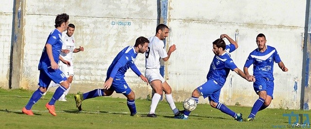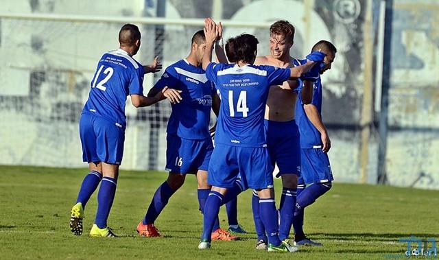 שחקני אזור חוגגים לאחר הניצחון מול כפר קאסם (מני בן-ארי)