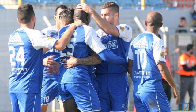 שחקני אשקלון חוגגים אמש בבאקה. ניצחון קליל
