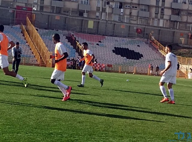 שחקני ראשון בחימום לפני המשחק (חן קלדרון)