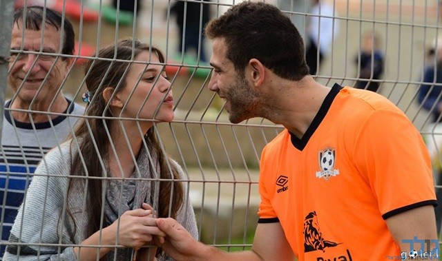 "חזום בנשיקה" , עומר חזום מקבל נשיקה מחברתו לאחר המשחק (מני בן-ארי)