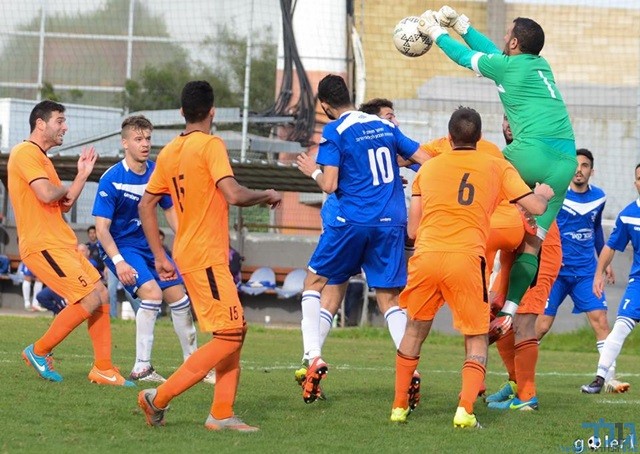 רון למל קולט כדור שנבעט עליו מהתקפת נס ציונה (מני בן-ארי)
