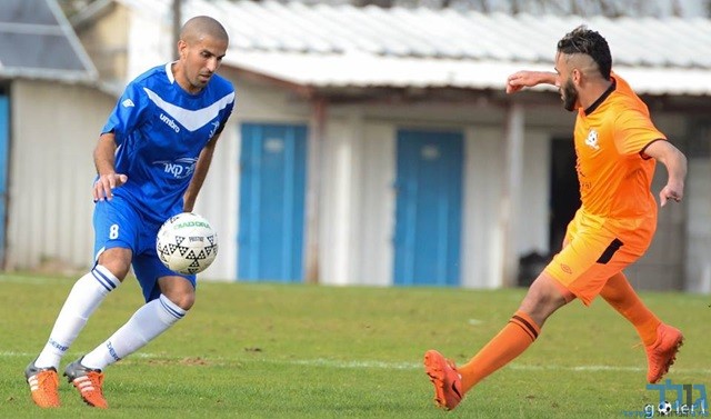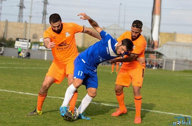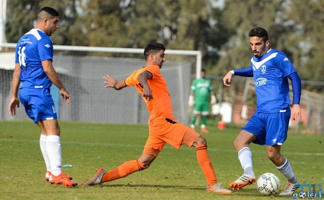 עומרי אטיה ויותם פנסו מנסים לחטוף את הכדור מיובל אשכנזי (מני בן-ארי)