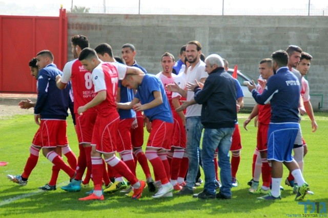 צחי אילוז ושחקניו חוגגים ניצחון שנותן הרבה אוויר (שאקר מואסי)