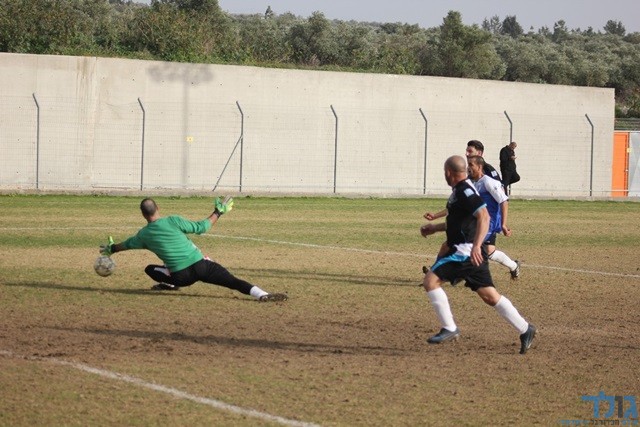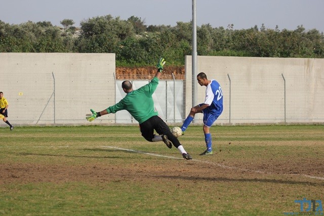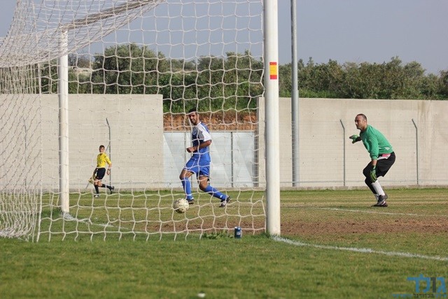 אדהם מסתכל איך הכדור מתגלגל לרשת בדרך לשלושער (תאמר סרסור)
