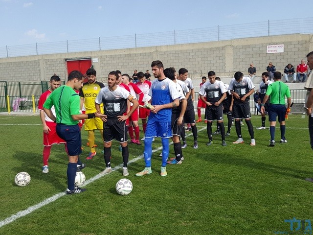 שחקני שתי הקבוצות לפני פתיחת המשחק (שאקר מואסי)