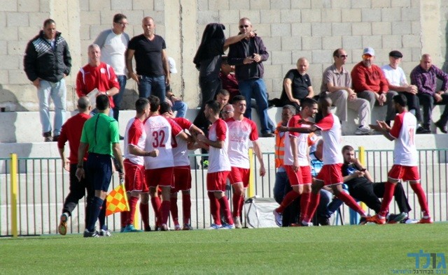 שחקני חדרה חוגגים שער יתרון (שאקר מואסי)