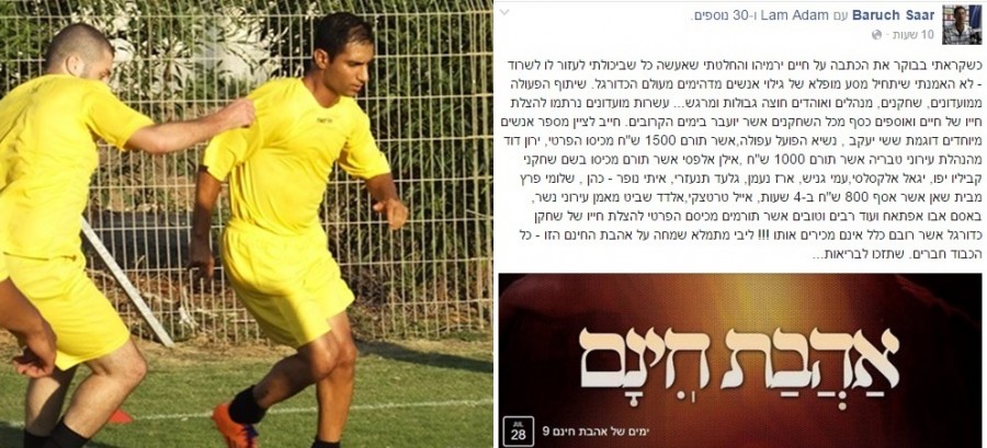 הכתבה שעלתה לראשונה באתר גולר 1 על מצבו הקשה של "הסילון", חיים ירמיהו לא השאירה אף עין יבשה. דקות ספורות לאחר פרסומה, ברוך סער אחד מהאנשים והמאמנים המוערכים ביותר בליגות הנמוכות שכיום מנהל את בית ספר לכדורגל של מכבי חיפה, לקח את הפרויקט תחת חסותו ופרסם פוסט מרגש בפייסבוק שזכה ללא מעט תגובות, שיתופים ולייקים רבים. כך כתב: "אני לא בטוח שאני מכיר את חיים ירמיהו, אבל כשאני קורא על שחקן ממשפחת הכדורגל שצריך להציל את חייו אני חושב שאנו צריכים להראות את הפן היפה של אנשי הכדורגל. אני קורא לכל קבוצות הבוגרים בארץ לארגן תרומה סמלית מכל שחקן וביחד נסייע לו לצאת מן המחלה הארורה הזו. קבוצות אסי גלבוע, עירוני צור שלום, בית הספר לכדורגל של מכבי חיפה אותו אני מנהל נרתמים כולם לעזור - בואו ניתן כולנו יד ונראה אהבת חינם שהיא כל כך חסרה בכדורגל שלנו".