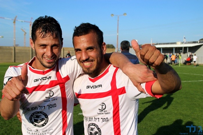 מוחמד חגיר וחאתם כאיים חוגגים את הניצחון (שאקר מואסי)