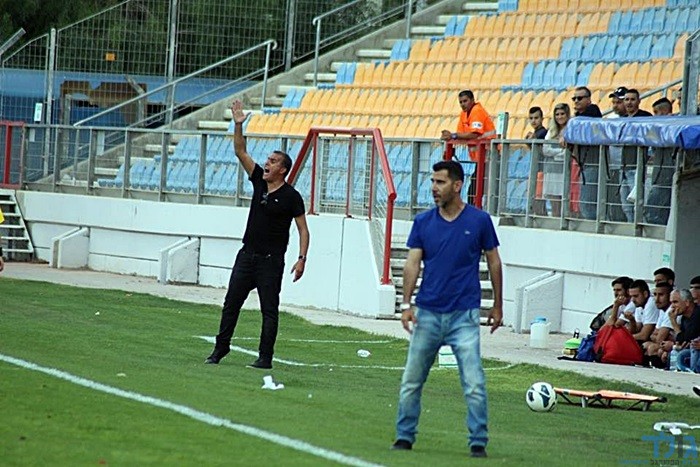 מוריס אוזן ושלום לוי מחלקים הוראות לשחקניהם (אביב עובדיה)