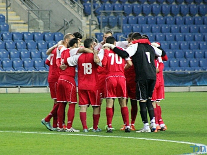שחקני כפר קאסם לפני פתיחת המשחק (תאמר סרסור)