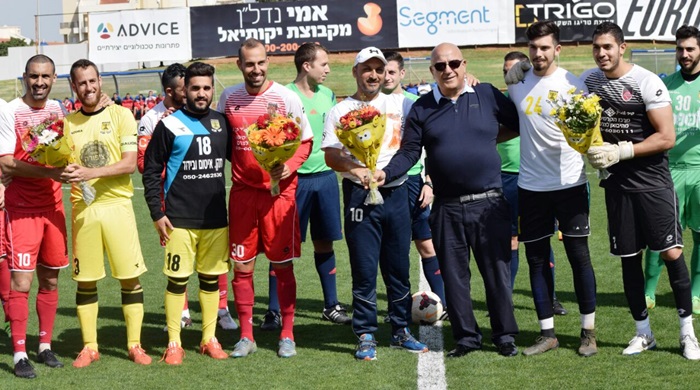 שחקני כפ"ס מעניקים זרי פרחים לחבריהם לשעבר (דני מלניצקי)