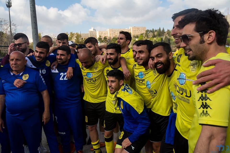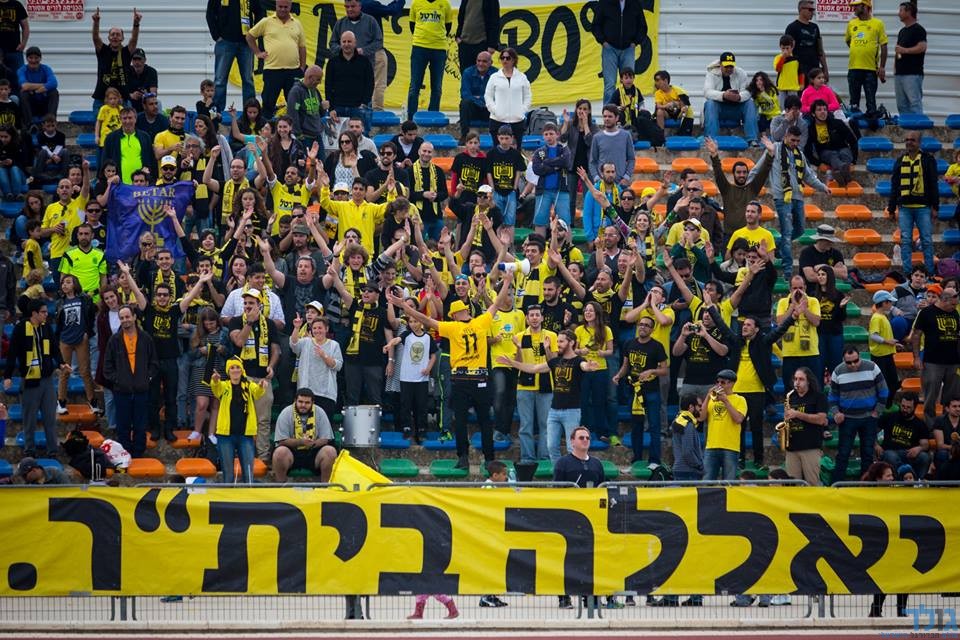 אוהדי בית"ר נורדיה ירושלים, מאושרים על עלייתם לליגה ב'. (ברק תורג'מן)