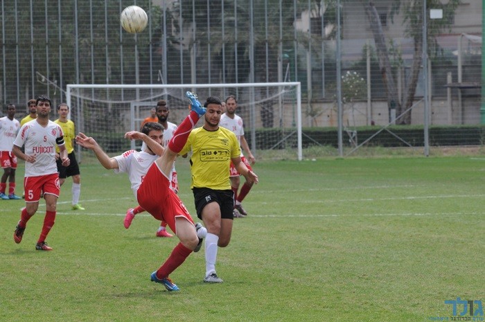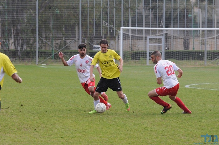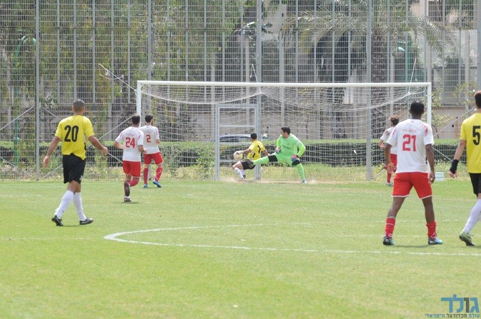 גל יער מנסה להשתלט על הכדור מול עומרי אגיב (איתן ידגר)