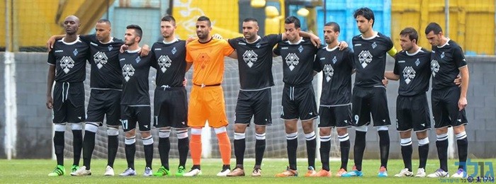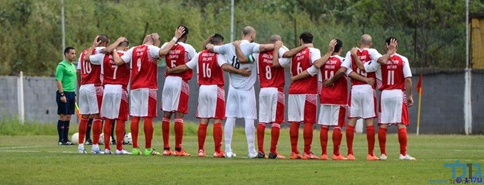 שחקני שתי הקבוצות בדקת הדומיה (מני בן-ארי)