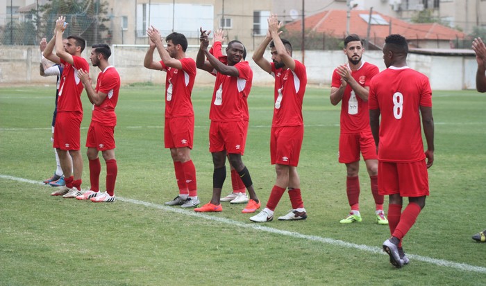 שחקני עמישב חוגגים שער מצמק. שלא הספיק