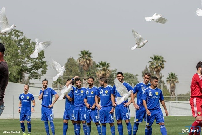 הפרחת היונים במגרש על רקע שחקני כרמיאל (מאור אלקסלסי)