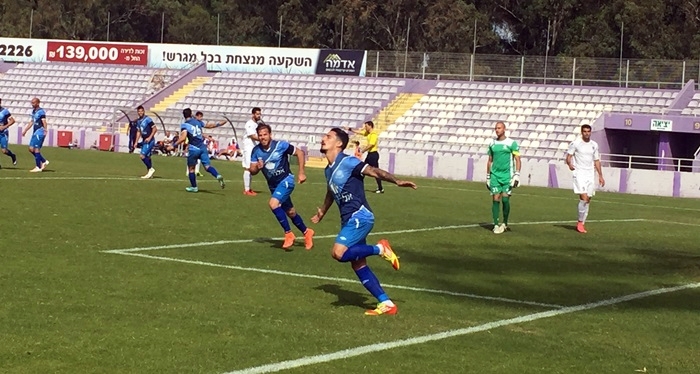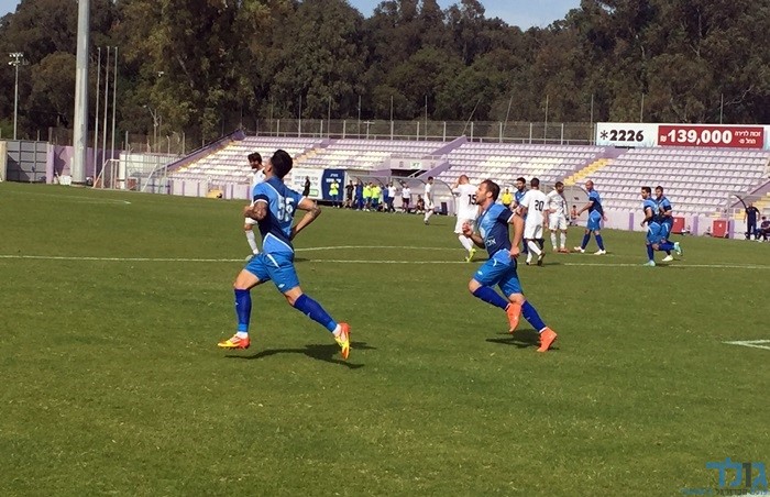 שי רביבו רץ לחגוג עם רנקביץ את שערו השני (אבייתר ברק)
