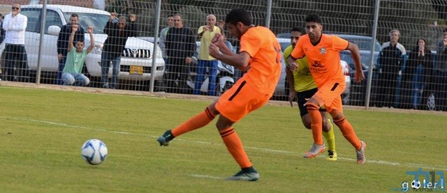ניר שרון ניגש לבעיטה השנייה ומחמיץ (מני בן-ארי)