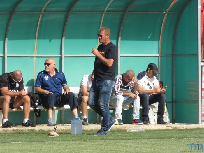 צחי אילוז מאמנה של עירוני באקה מאוכזב בסיום המשחק (אלעד שומינוב).