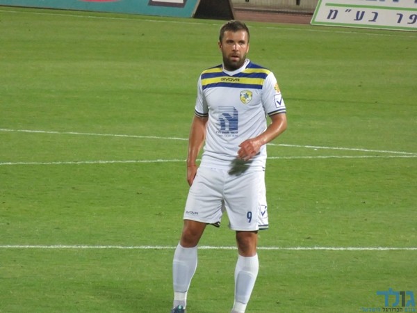 מירוסלב אנטונוב, חלוצה של יבנה, שחגג נגד עפולה ומאיר כהן.(צילום:אלעד שומינוב)