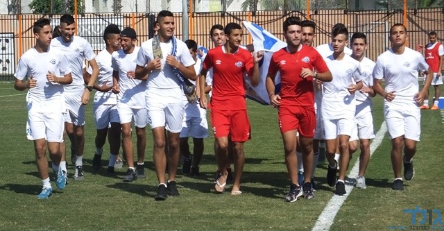 נערים ב' של מכבי קביליו יפו בסיבוב אליפות יחד עם הצות המקצועי. (אביחי חיים)